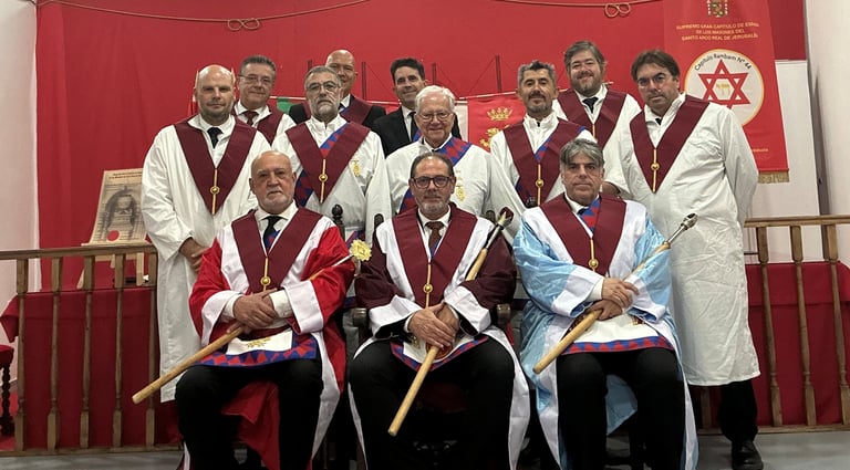 El Gran Primer Princípal del Supremo Gran Capítulo del SANTO ARCO REAL DE JERUSALÉN de España. Txema Oleaga Zalvidea, el Gran Superintendente de Andalucía, Clive W Blake, acompañado de los Oficiales Consagrantes y los Miembros Fundadores se reunieron para Consagrar el Capítulo Rambam no 44 a la Gloria del Dios Altísimo Vivo y Verdadero, y para el bien de la Masonería del Arco Real
